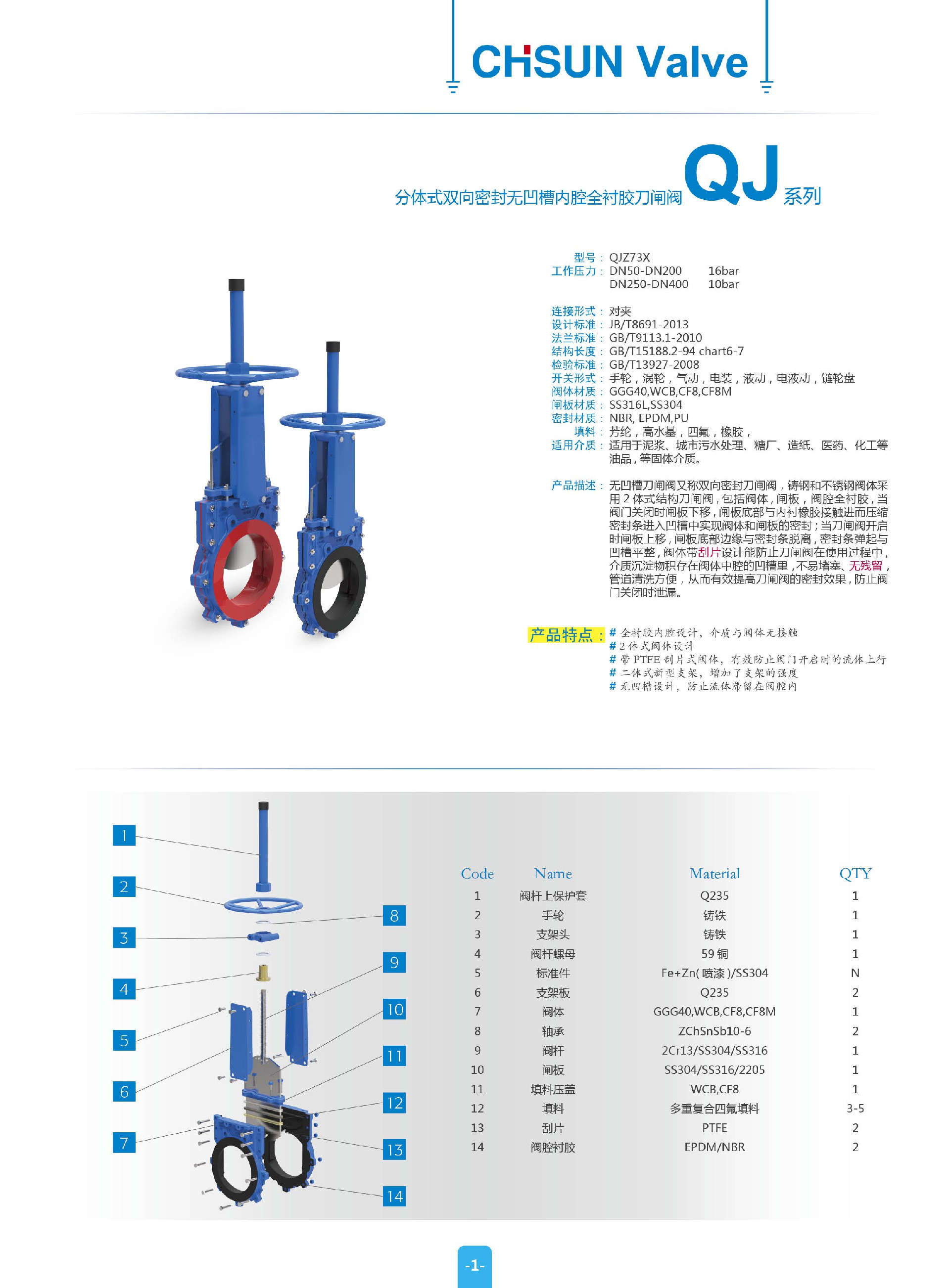 | 产品描述: | QJ无凹槽衬胶刀闸阀又称双向密封刀闸阀,铸钢和不锈钢阀体采用2体式结构刀闸阀,包括阀体, 闸板和U型密封条, 阀体左右两侧及中腔底部设有凹槽并装有弹性U型密封条,当阀门关闭时闸板下移, 闸板底部与密封条接触进而压缩密封条进入凹槽中实现阀体和闸板的密封; 当刀闸阀开启时闸板上移, 闸板底部边缘与密封条脱离, 密封条弹起与凹槽平整, 阀体带刮片设计能防止刀闸阀在使用过程中,介质沉淀物积存在阀体中腔的凹槽里,不易堵塞、无残留,管道清洗方便,从而有效提高刀闸阀的密封效果, 防止阀门关闭时泄漏。 |